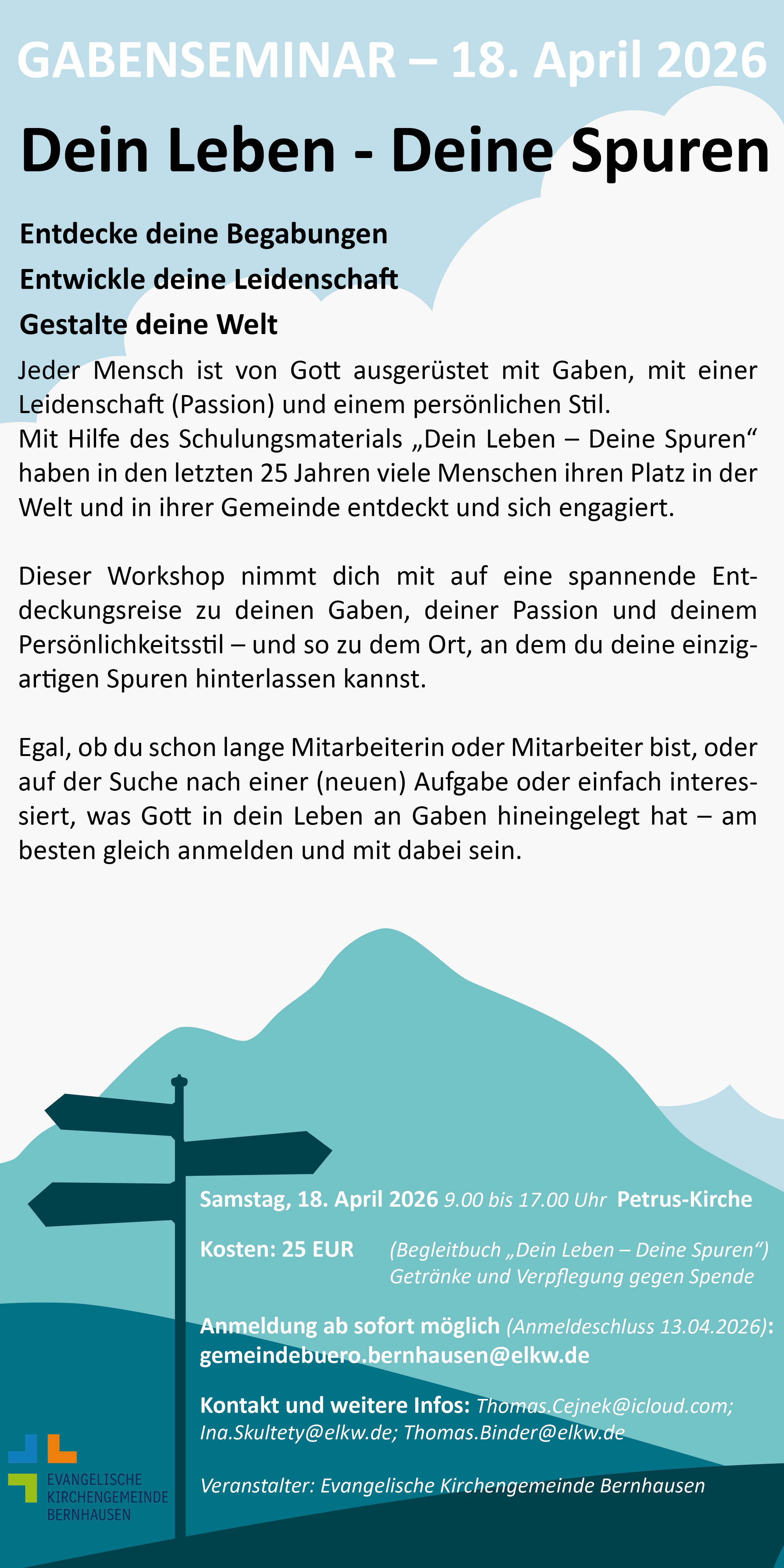 Am 18. April 2026 startet wir zum zweiten Mal das Gabenseminar "Dein Leben - Deine Spuren"